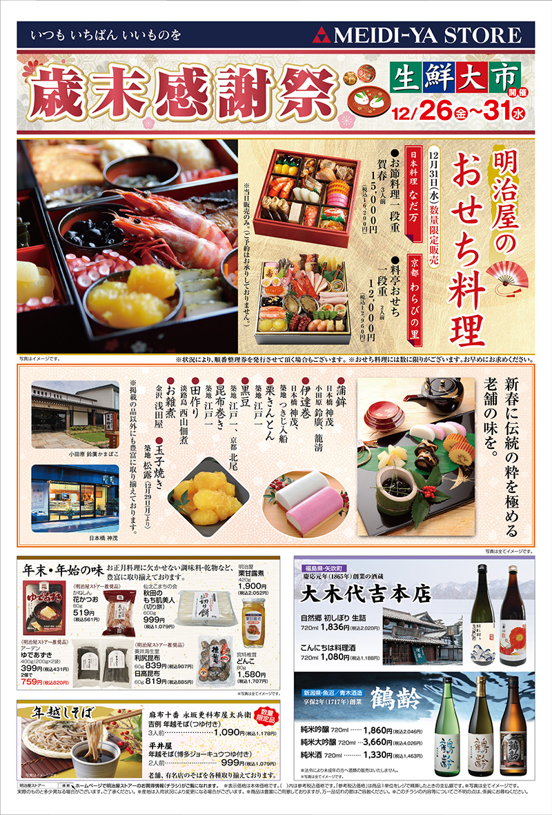 | 1/21(水)〜27(火) | 「宮城フェア」新春の美味満載の宮城から、人気の選りすぐり物産品を数量限定にてお取揃え。ご期待ください! |